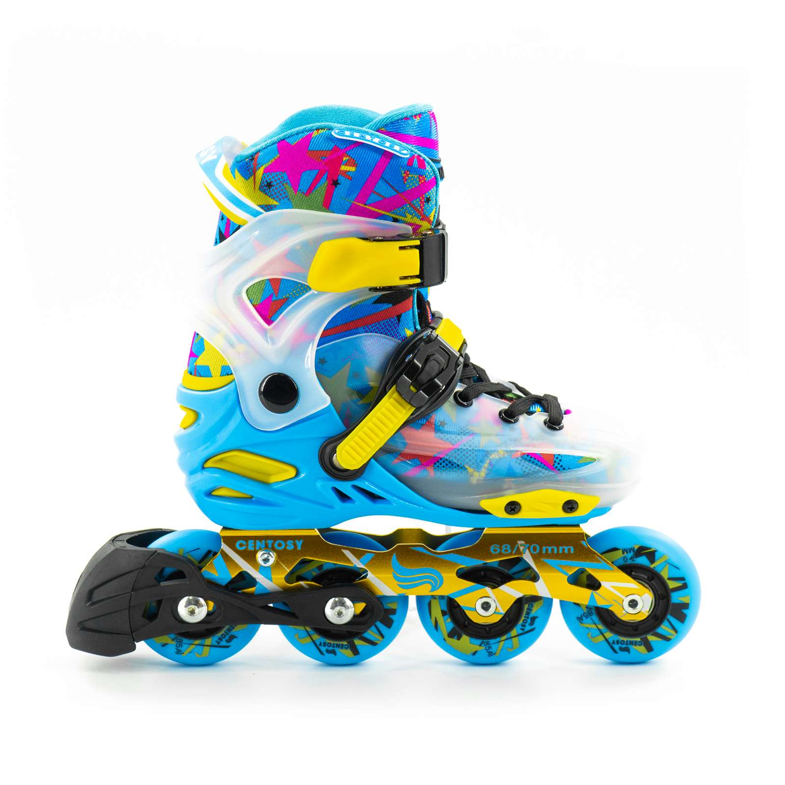 Thiết kế bắt mắt: Với thiết kế boot nhựa trong bên ngoài để lộ phần boot vải với họa tiết hình ngôn sao bên trong, Centosy là hãng giày đầu tiên cho ra mắt thiết kế bắt mắt và tinh tế đến thế. Bảo sao các bạn nhỏ cứ mê mẩn, đi tới đâu cũng đòi mua bằng được giày patin Centosy mới chịu