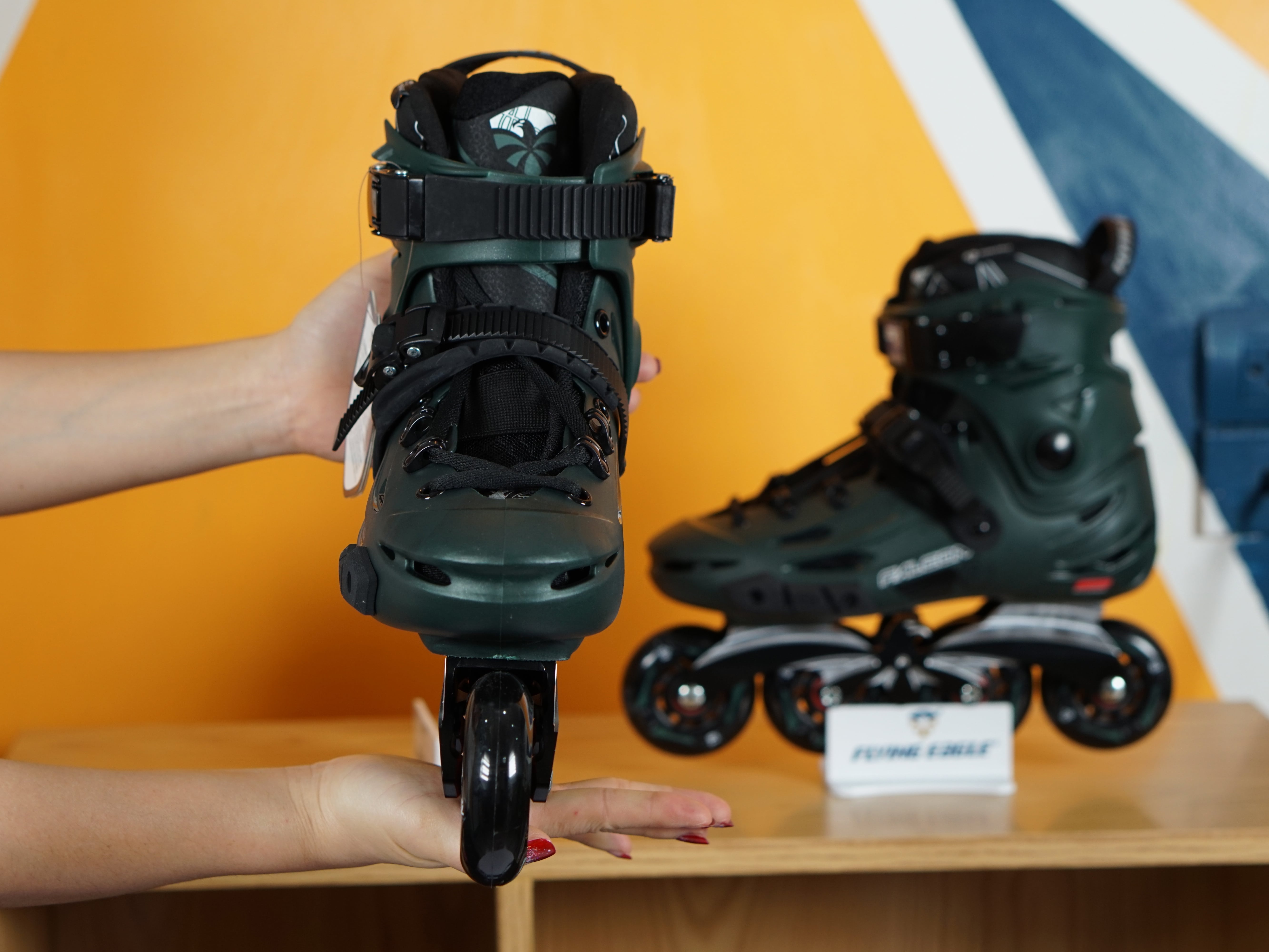 Giày trượt patin Flying Eagle F6S với phiên bản màu xanh rêu thực sự tạo nên ấn tượng mạnh bởi sự sang trọng, mạnh mẽ, đây cũng là màu sắc cực hiếm trên bảng màu giày patin của các thương hiệu. F6S ra mắt thay thế cho phiên bản F6 trước đó. Điểm nổi bật của phiên bản F6S nằm ở chỗ bộ bánh xe thông minh có thể chuyển đổi bánh chuối hoặc phẳng chỉ một vài thao tác chỉnh con ốc đầu cuối hàng bánh xe. Là tính năng được rất nhiều người chơi ưa thích bởi có thể điều chỉnh dễ dàng và nhanh chóng phù hợp với nội dung tập luyện ưa thích của bản thân. F6S Falcon là một trong những phiên bản được các Skater ở Châu Âu, Châu Mỹ ưa sử dụng