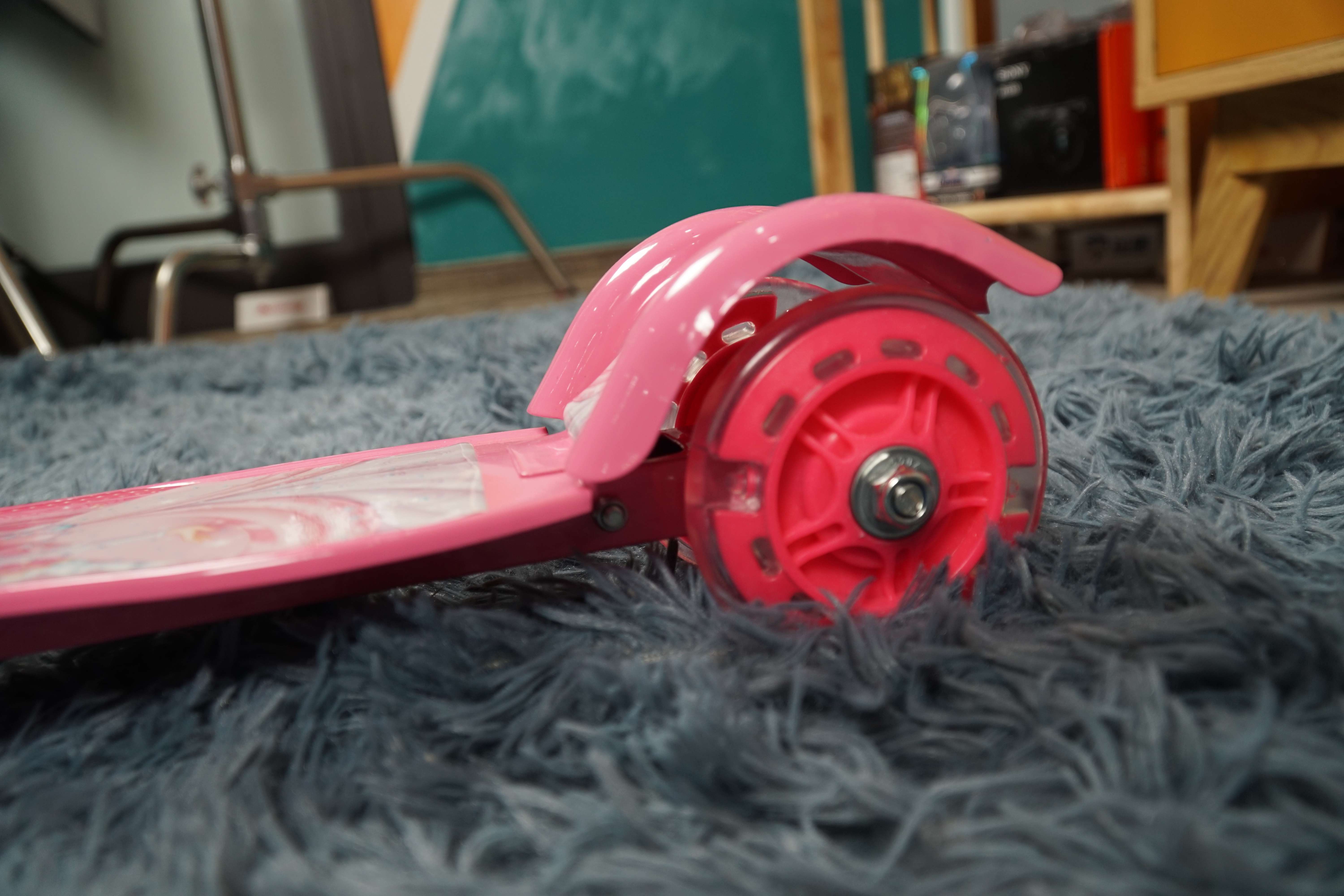 Bánh xe: Phần bánh xe sử dụng chất nhựa cứng cao cấp pha cao su, giúp giảm tối đa man sát, mài mòn khi sử dụng. Thay vì thiết kế 2 bánh thông thường, scooter 036 thiết kế 2 bánh trước nhỏ, và 1 bánh sau giúp xe được cân bằng, bảo vệ an toàn cho bé trong suốt quá trình tập luyện, vui chơi. Phần bánh xe có gắn đèn, giúp tăng hứng thú bé trong quá trình tập luyện